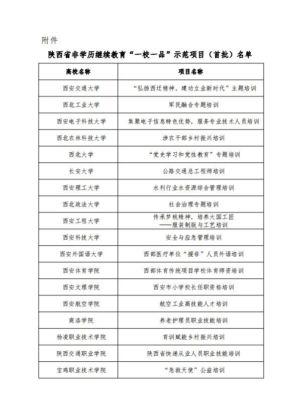 2022年陕西省高等继续教育学会组织开展非学历继续教育“一校一品”项目评选活动,全省共有25家高校的41个项目参评。经陕西省非学历继续教育“一校一品”项目专家组评审,近日确定西安交通大学等高校的18个项目入选陕西省非学历继续教育“一校一品”首批示范项目,beat365官网申报的“航空工业高技能人才培训”项目成功入选。