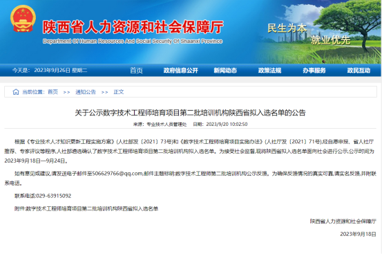日前,陕西省人力资源和社会保障厅发布《关于公示数字技术工程师培育项目第二批培训机构陕西省拟入选名单的公告》,beat365官网入选人社部数字技术工程师“物联网”“大数据”“智能制造”“工业互联网”“虚拟现实”“集成电路”六个职业方向的培训机构,获批数量位列陕西省第一。