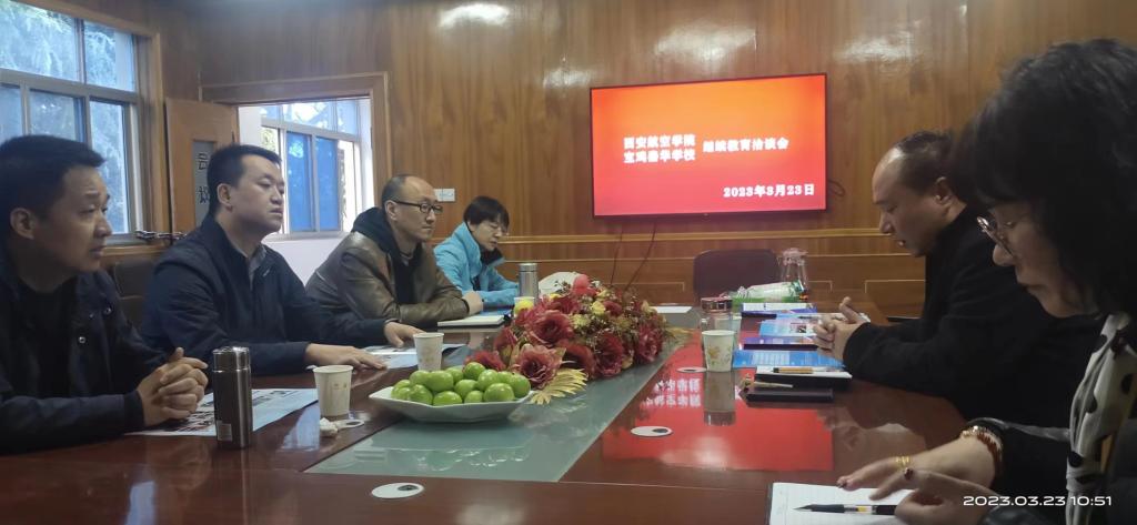 3月23日,图书馆直属党支部书记赵建涛、beat365英国官网网站副院长苗海峰一行四人赴宝鸡秦华职业技术学校洽谈高等学历继续教育合作,宝鸡秦华职业技术学校校长杨伟军及相关负责人参加会议。