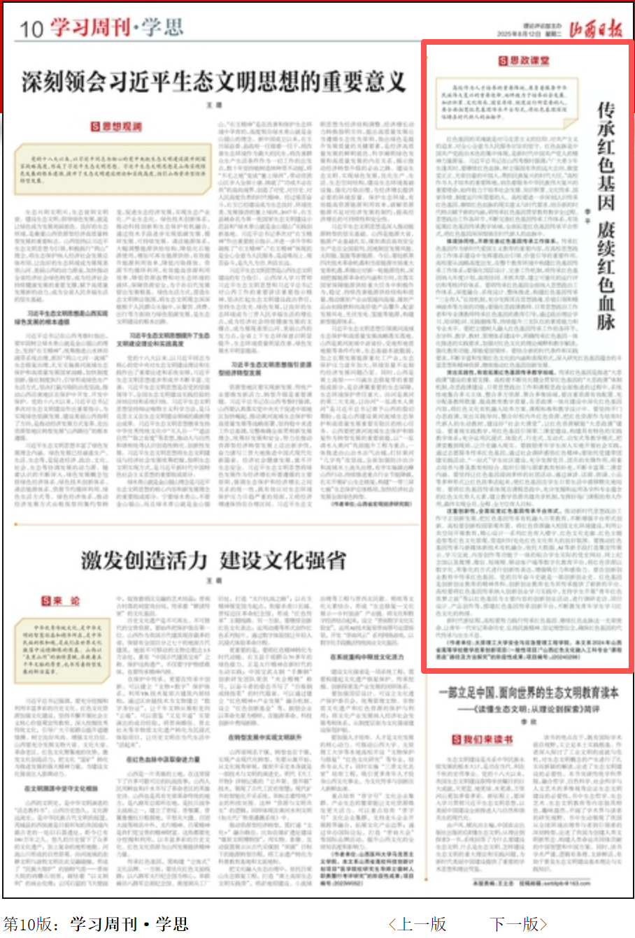 《山西日报》理论版刊发永利集团官网党委书记李平署名文章:《传承红色基因 赓续红色血脉》